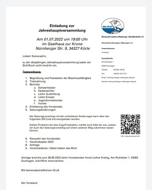 Hiermit laden wir unsere Mitglieder zu unserer Jahreshauptversammlung am 01.07.2022 im Gathaus zur Krone in Körle ein. Wir freuen uns auf euer zahlreiches erscheinen.